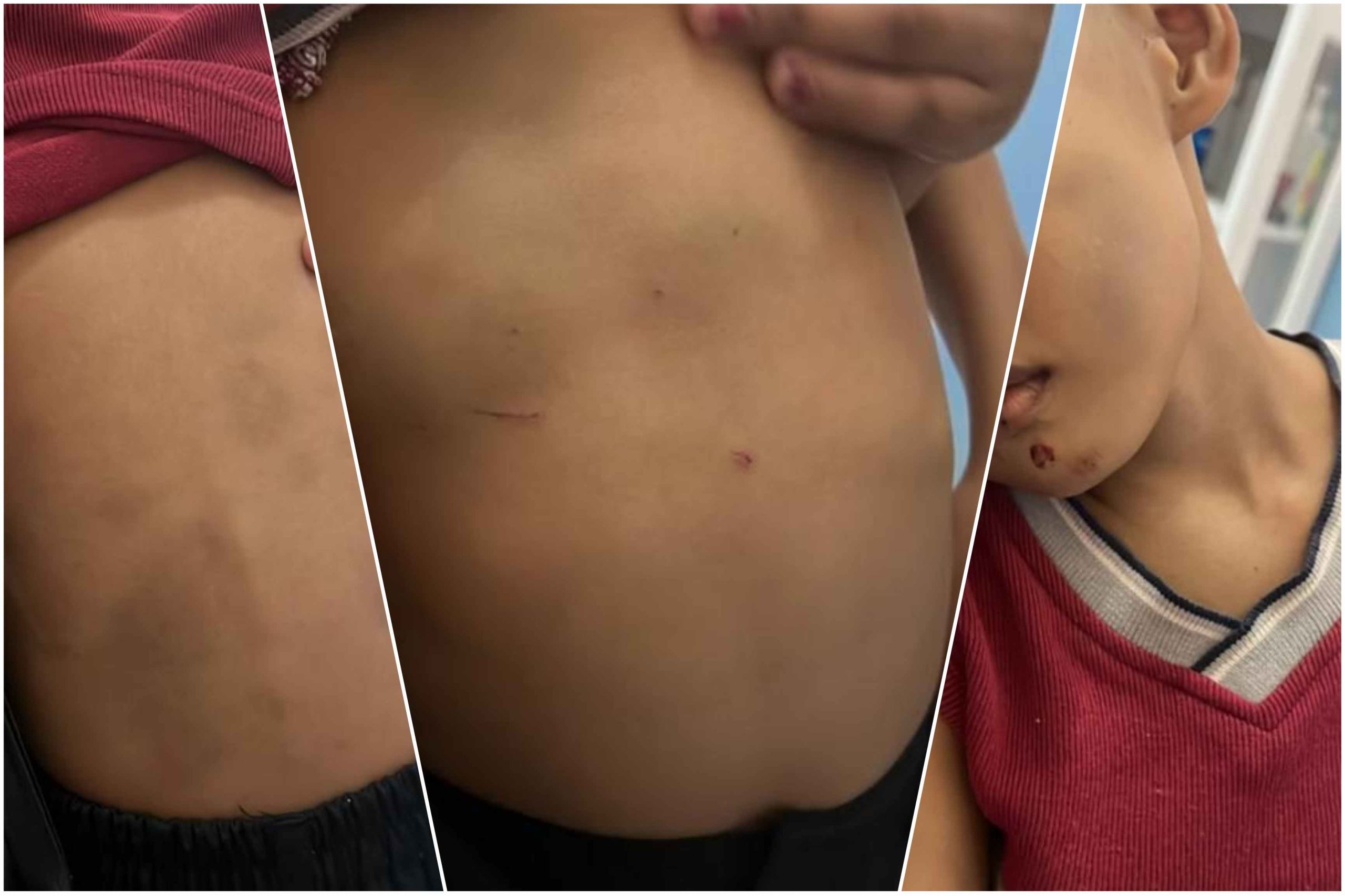 Dari beberapa foto yang beredar, terlihat di sekujur tubuh AK terdapat memar berwarna kebiruan di bagian punggung, pipi sebelah kiri dan bagian dada yang diduga akibat hantaman benda tumpul, sehingga anak malang ini harus menjalani perawatan serius di salah satu rumah sakit di Manado.