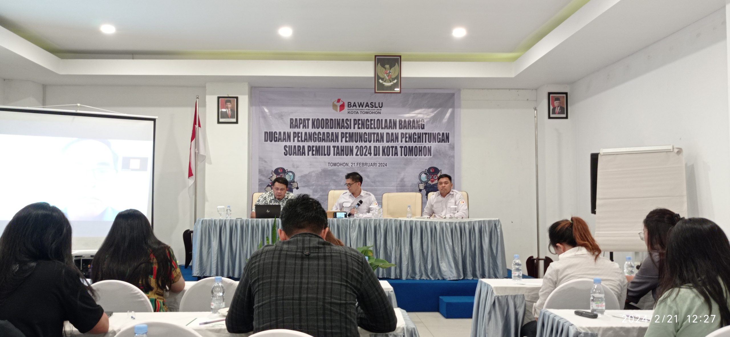 BERITA ONLINE LOKAL, TOMOHON – Badan Pengawasan Pemilihan Umum (Bawaslu) Kota Tomohon, melaksanakan Rapat Koordinasi (Rakor) Pengelolaan Barang Dugaan Pelanggaran Pemungutan dan Perhitungan Suara Pemilu Tahun 2024 di Kota Tomohon, Rabu (21/02/2024), bertempat di Grand Master Resort Kecamatan Tomohon Utara.