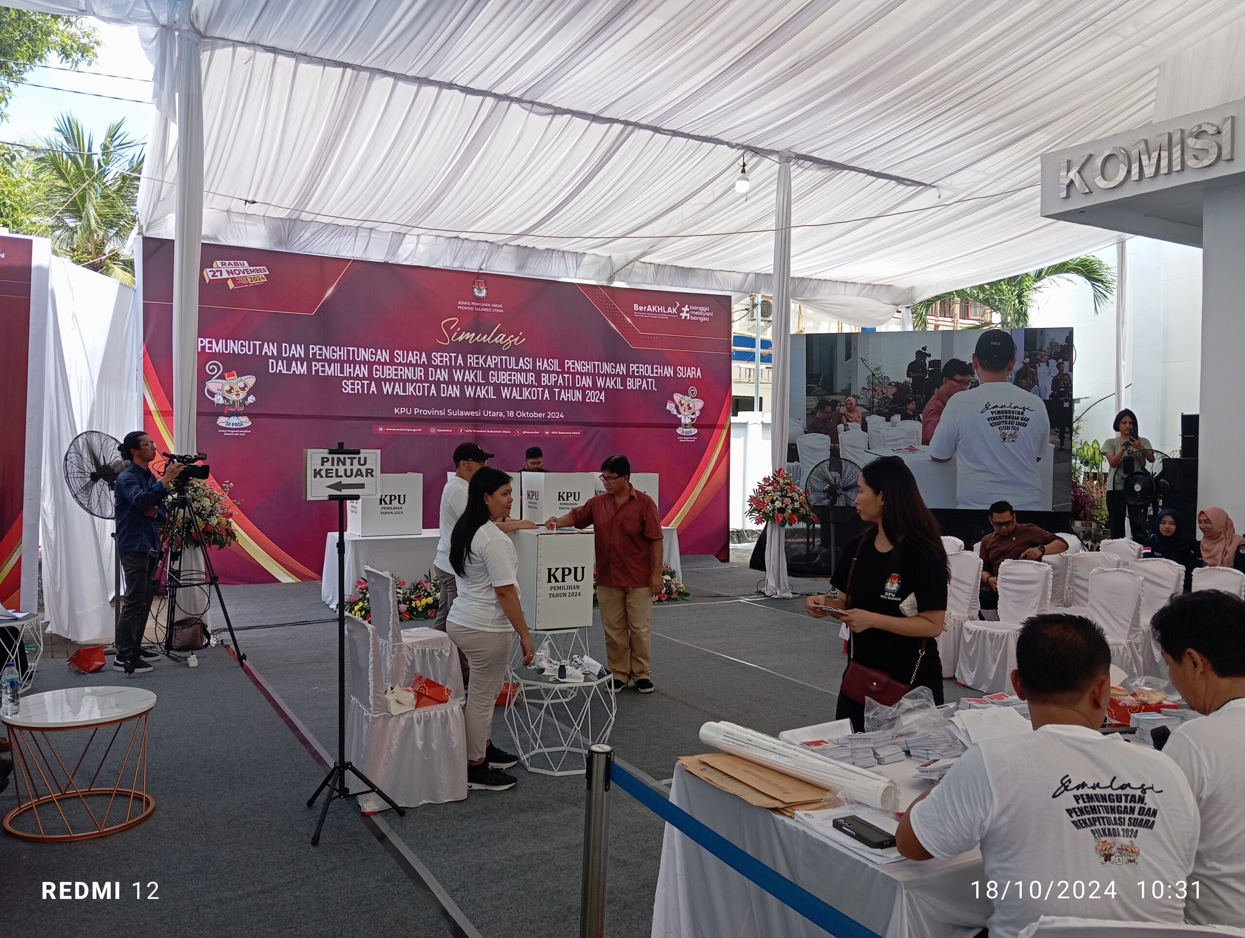 Manado, Berita Online Lokal.Com- Komisi Pemilihan Umum (KPU) Sulut menggelar simulasi pemungutan dan penghitungan serta rekapitulasi hasil perhitungan perolehan dalam pemilihan Gubernur dan Wakil Gubernur, Bupati dan Wakil Bupati, serta Walikota dan Wakil Walikota, Jumat (18/10/2024) yang dilaksanakan di halaman Kantor KPU Sulut.