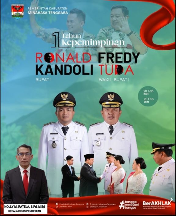 Kepala Dinas Pendidikan Kabupaten Minahasa Tenggara Nolly Moses Ratela mengucapkan ucapan selamat yang hangat atas peringatan 1 Tahun Kepemimpinan Bupati Ronald Kandoli dan Wakil Bupati Fredi Tuda. Dalam kesempatan tersebut, dia menekankan bahwa masa jabatan satu tahun terakhir telah menunjukkan neraca penyeimbang yang solid antara janji politik yang disampaikan saat kampanye, realisasi program pembangunan yang telah dilaksanakan, serta ekspektasi yang ada di tengah masyarakat.
