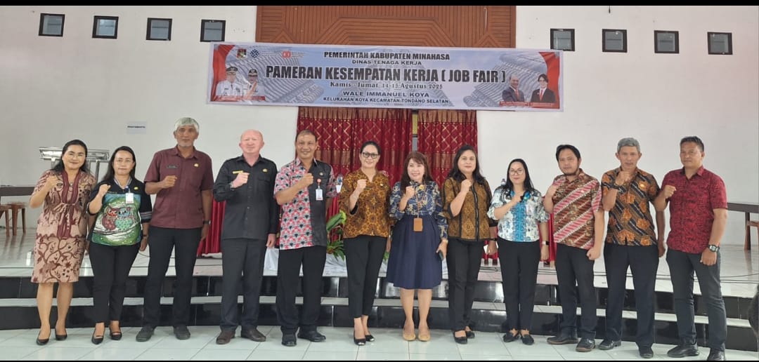 TONDANO, BERITA ONLINE LOKAL,— Pemerintah Kabupaten Minahasa melalui Dinas Tenaga Kerja menyelenggarakan Pameran Kesempatan Kerja (Job Fair) Tahun 2025 yang berlangsung pada 14–15 Agustus 2025 di Gedung Serbaguna Wale Imanuel Koya, Tondano.