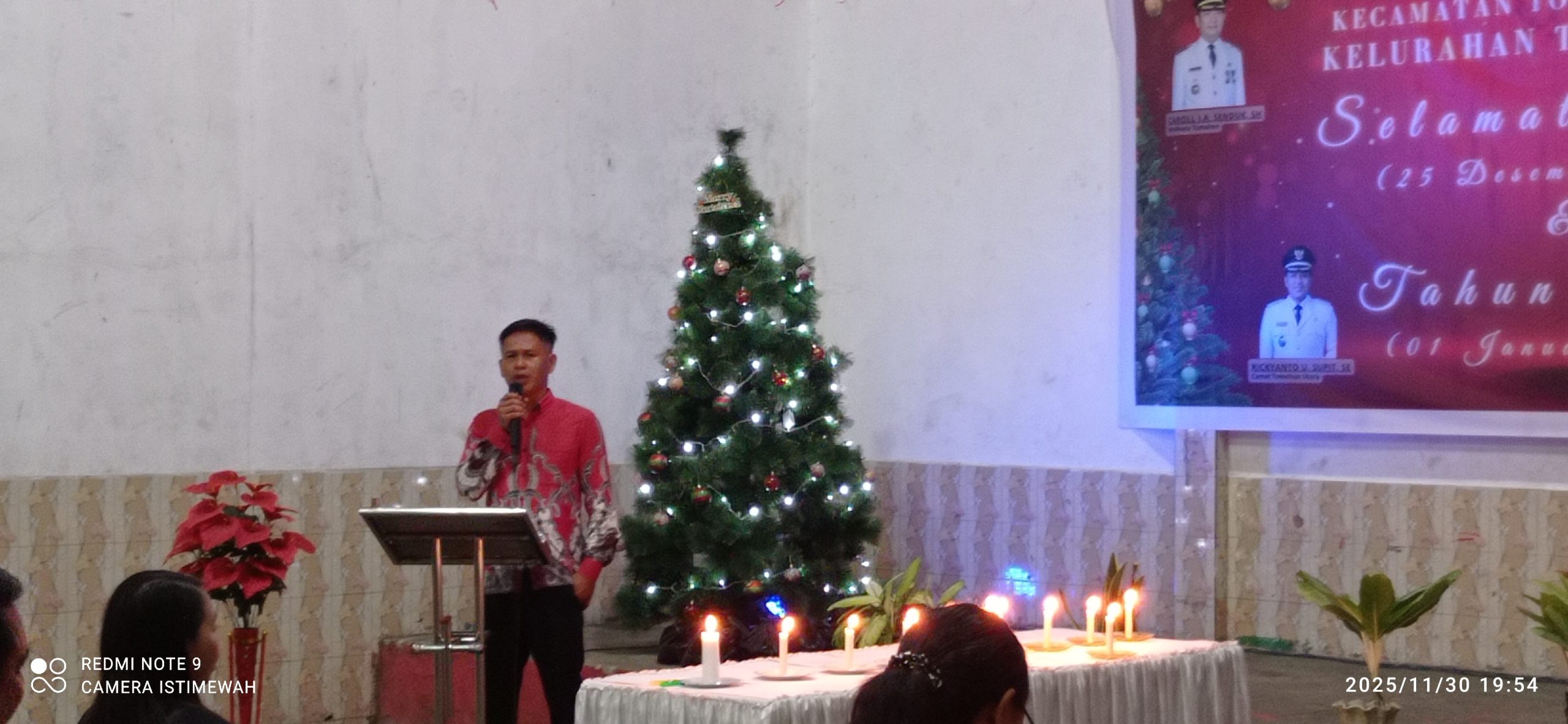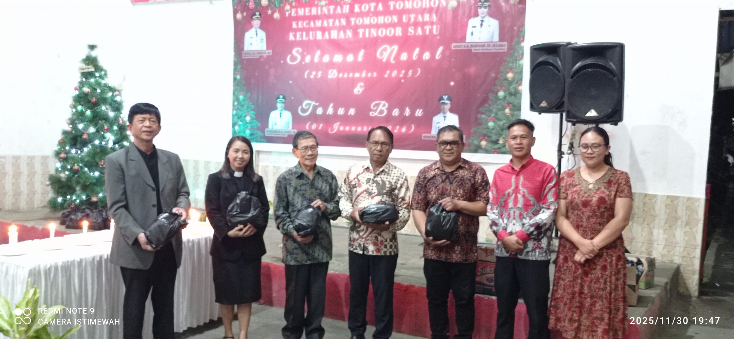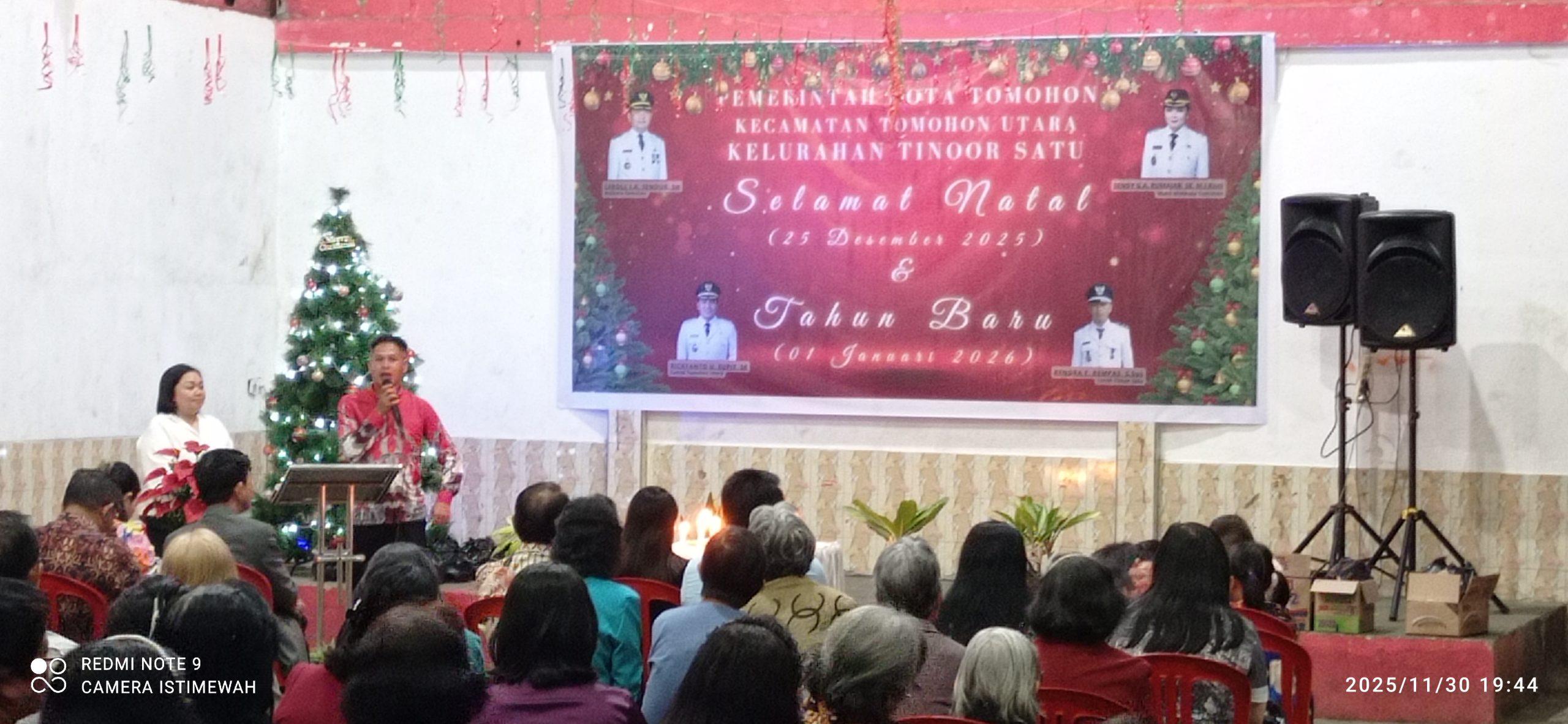 Lurah Rempas kemudian menyampaikan ucapan selamat Natal dan Tahun Baru, baik atas nama Pemerintah Kelurahan Tinoor Satu maupun atas nama Pemerintah Kota Tomohon.