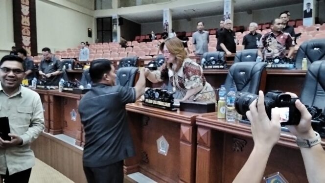Ketua Komisi II DPRD Sulut Inggrid Sondakh saat diakhir Rapat Paripurna KUA-PPAS melakukan intrupsi penyampaian aspirasi masyarakat Desa Kanonang, Senin (27/10/2025).