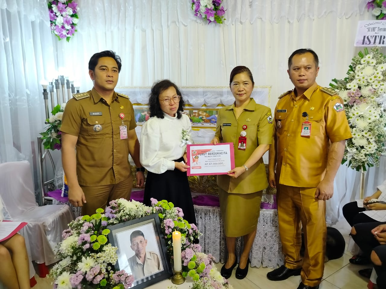 Kesempatan itu juga, Ketua TP-PKK menyerahkan santunan duka Pemerintah Kota Tomohon kepada keluarga yang berduka.