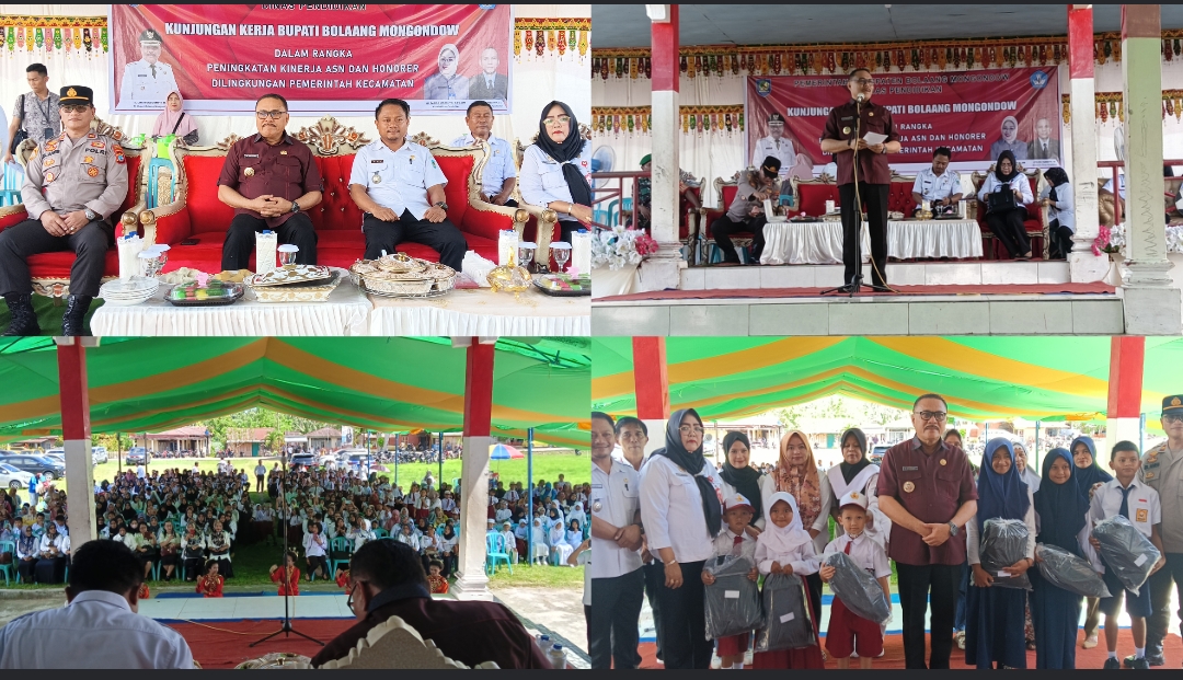 Kunjungan kerja bupati bolmong Ir.Limi Mokodompit sekaligus penyerahan seragam siswa satu paket kelas 1 SD dan SMP Kelas 7,tahun ajaran baru,kegiatan ini di laksanakan SMP Negeri 5 Lolayan, SDN 1 tungoi dan SDN 3 tungoi.