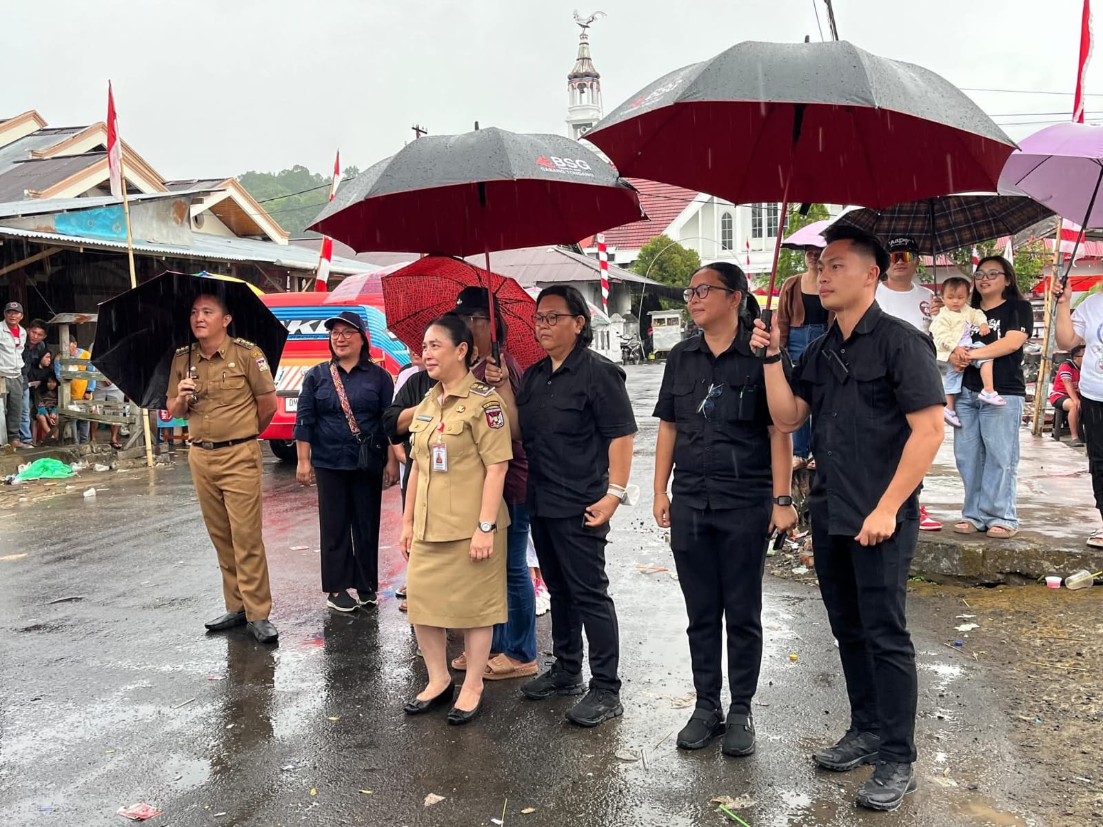 Meski di Guyur Hujan, Wabup Vanda Tetap Exis Saksikan Pawai Pembangunan di Sonder
