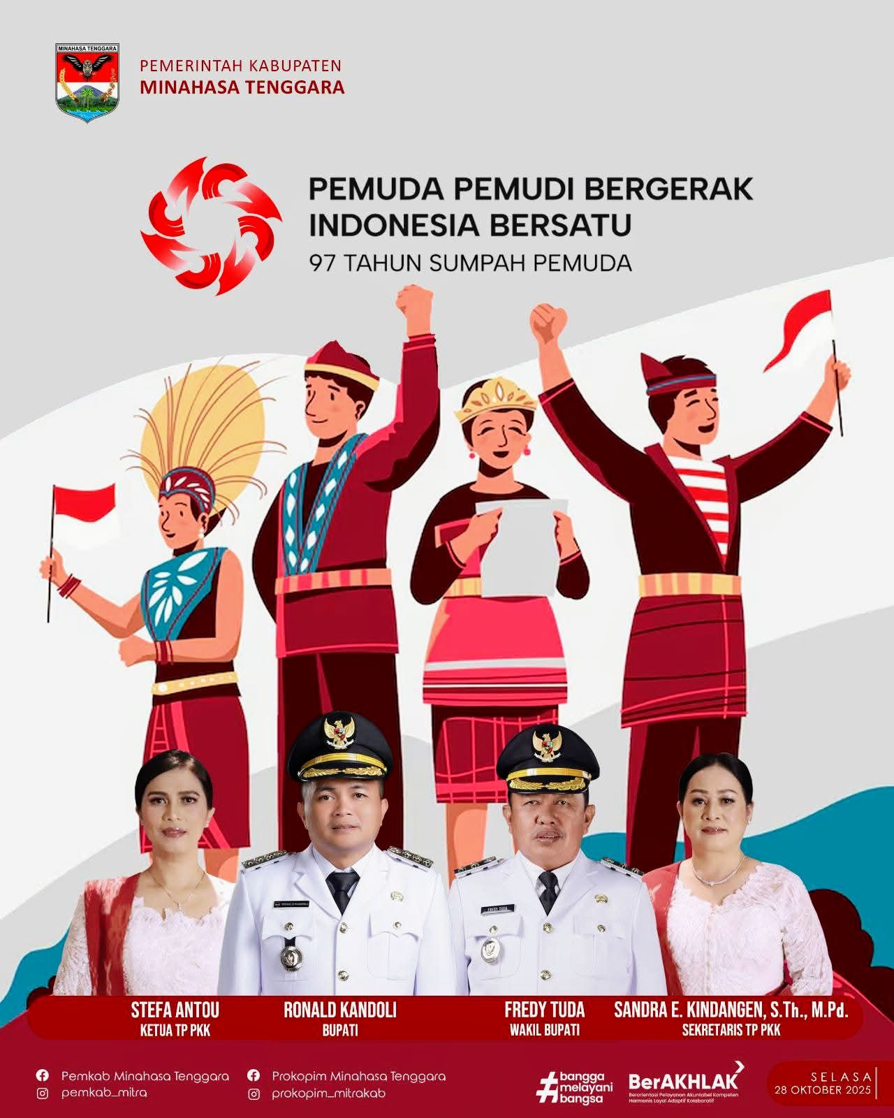 Dengan tema “Pemuda Perpaduan Bergerak, Indonesia Bersatu”, Pemerintah Kabupaten Minahasa Tenggara mengajak seluruh masyarakat untuk terus menumbuhkan rasa cinta tanah air, berinovasi, serta berkontribusi nyata dalam membangun daerah.