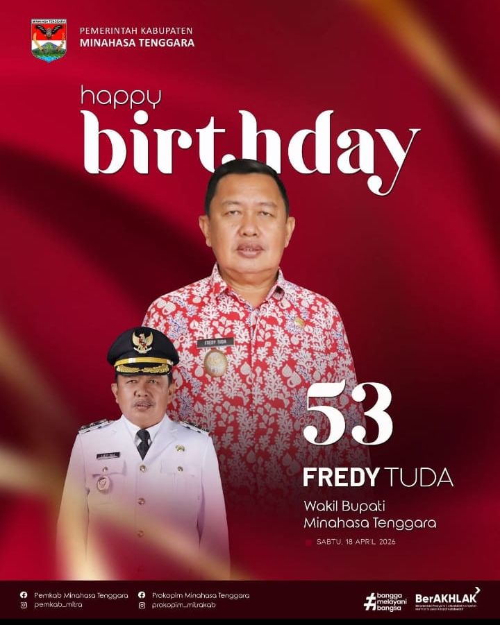 Ratahan,BeritaOnlineLokal.com — Pemerintah dan TP PKK Kecamatan Tombatu Timur menyampaikan Selamat Ulang Tahun kepada Wakil Bupati Minahasa Tenggara, Bapak Pnt.Fredy Tuda yang ke – 53 Tahun.