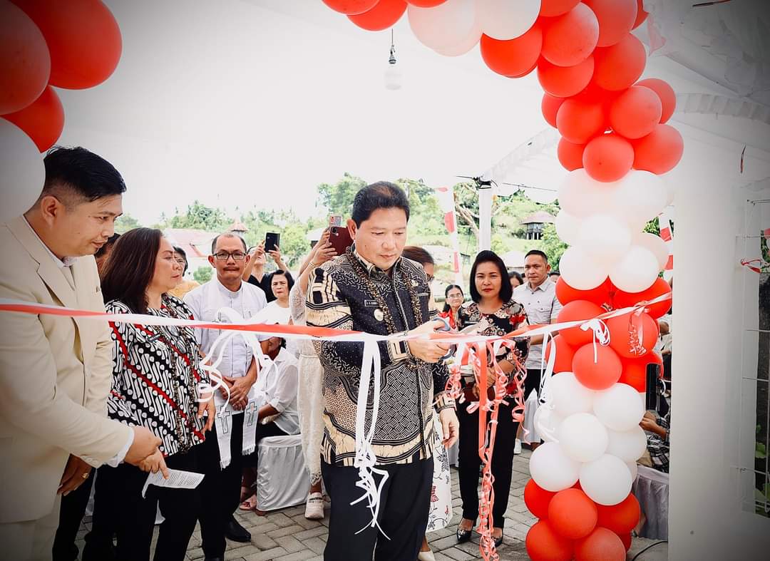 BERITA ONLINE LOKAL MINAHASA- Bupati Minahasa Dr. Jemmy Stani Kumendong, M.Si Menghadiri ibadah syukur peresmian kantor Desa Sawangan, yang bertempat di Kantor Desa Sawangan Kecamatan Kombi, Kamis (4/4/2024).