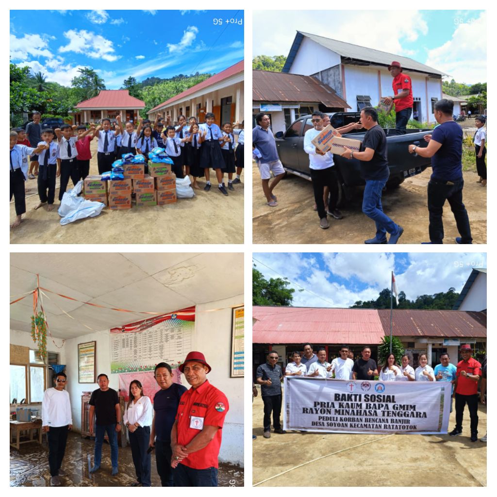“Kegiatan bakti sosial ini, sebagai bentuk kepedulian kami kepada saudara-saudara kita yang beberapa hari lalu terkena musibah banjir. Lebih khusus di Desa Soyowan,” ujar Pnt. Fredy Tuda.