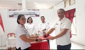 MINAHASA, BERITA ONLINE LOKAL, –Sekretaris Daerah Kabupaten Minahasa, Dr. Lynda D. Watania, MM, M.Si, yang di dampingi Kepala Badan Kepegawaian dan Pengembangan Sumber Daya Manusia (BKPSDM) Minahasa, Drs. Moudy Pangerapan, MAP.,menghadiri Serah terima jabatan Kepimpinan Camat Tondano Selatan. Rabu (28/5/2025).