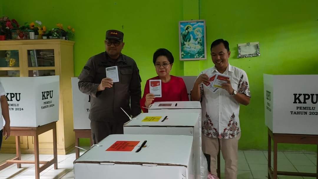 BERITA ONLINE LOKAL, SANGIHE – Penjabat Bupati Sangihe, dr. Rinny Tamuntuan menggunakan hak politiknya (Mencoblos) pada Pemilihan Umum (Pemilu) 2024 di Tempat Pemungutan Suara (TPS) III Kelurahan Tona 2 Kecamatan Tahuna Timur, Rabu (14/2/2024).