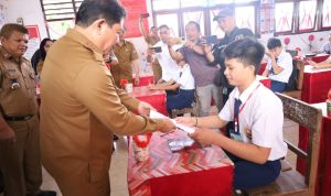 BERITA ONLINE LOKAL, MINAHASA.– Pj. Bupati Minahasa Dr. Jemmy Stani Kumendong M,Si, membuka naskah soal Ujian Sumatif Akhir Jenjang (USAJ) bagi siswa kelas 9 dan siswa kelas 6 SD yang bertempat di SMP Negeri 1 Kakas,SMP N 2 Kakas, dan SDN 1 Kakas, Senin (29/4/2024).