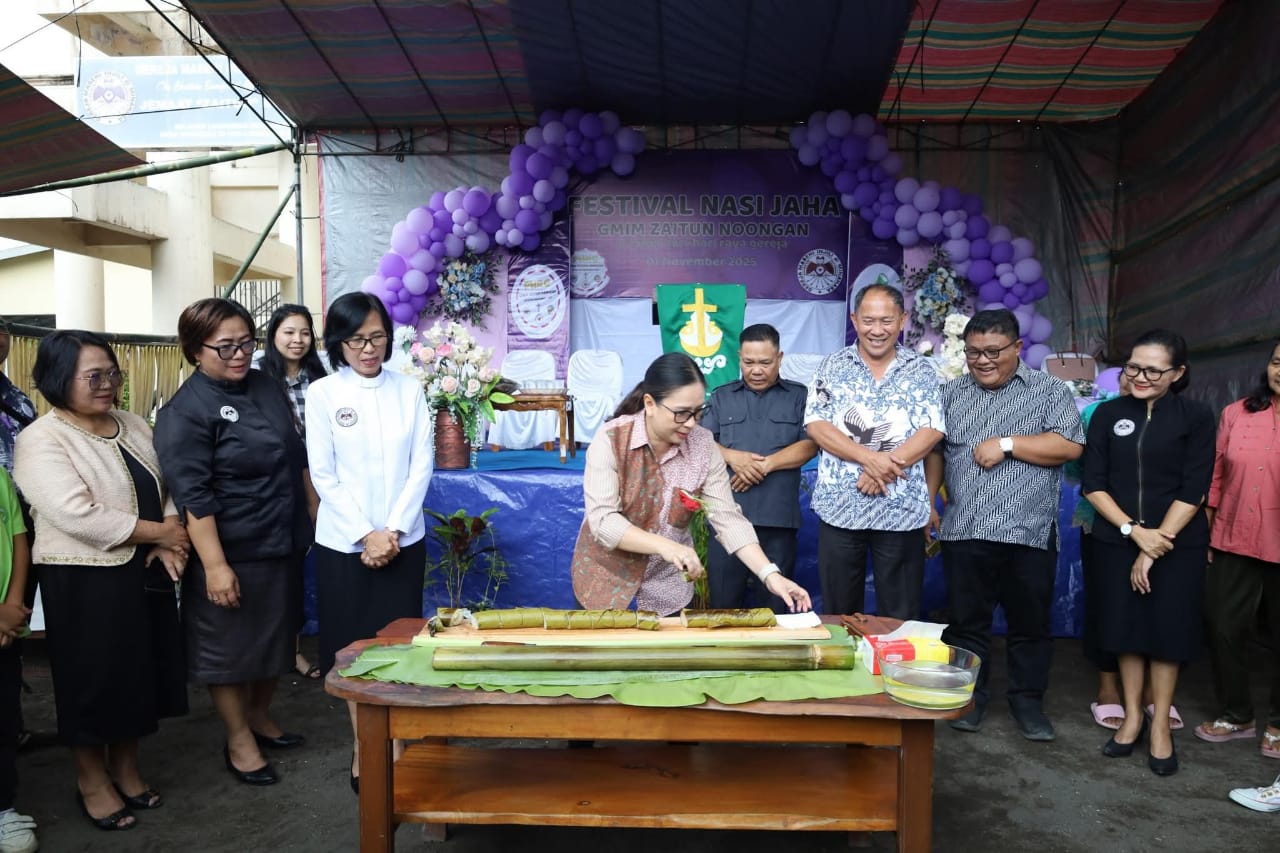 MINAHASA, BERITA ONLINE LOKAL,– Wakil Bupati Minahasa, Vanda Sarundajang, S.S., menghadiri Festival Nasijaha yang digelar di halaman Gereja GMIM Zaitun Noongan, Sabtu (1/11/2025)