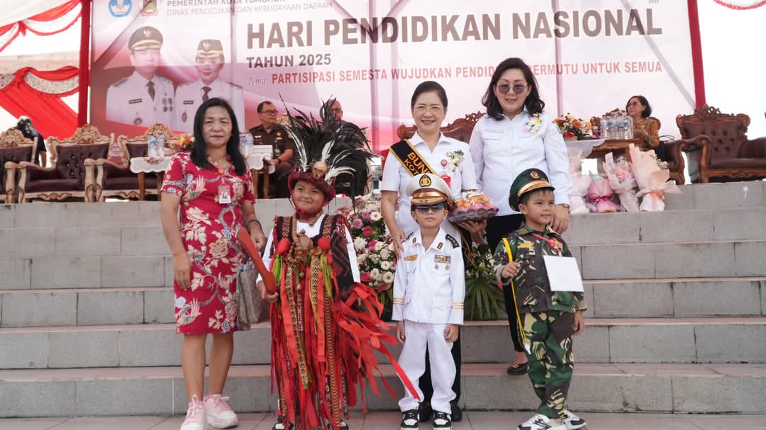 Bunda PAUD Kota Tomohon, drg. Jeand’arc Senduk-Karundeng, bertindak sebagai pembina upacara. Dalam amanatnya, beliau menekankan pentingnya pendidikan yang menyenangkan bagi anak-anak sebagaimana filosofi Ki Hajar Dewantara.